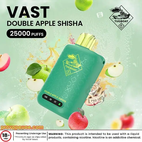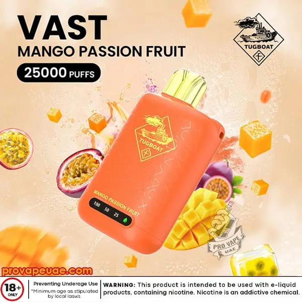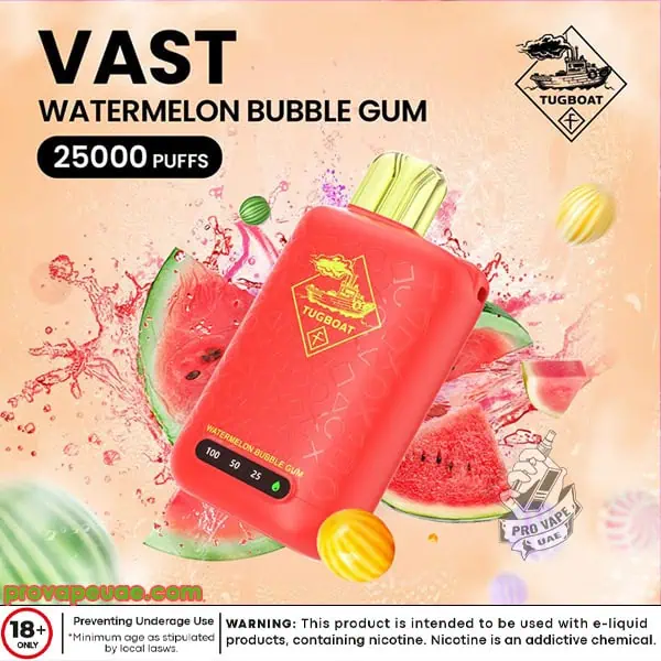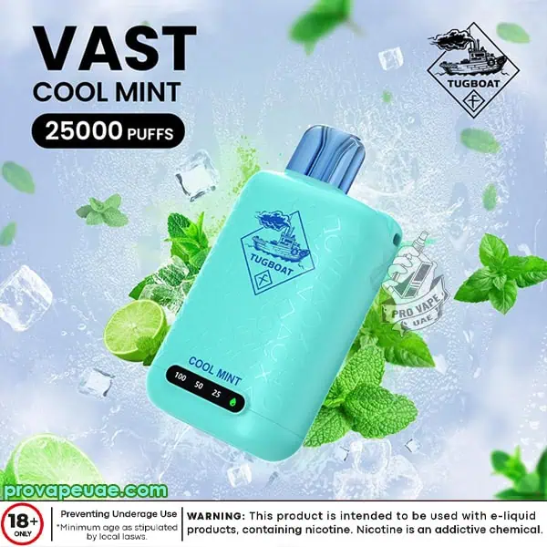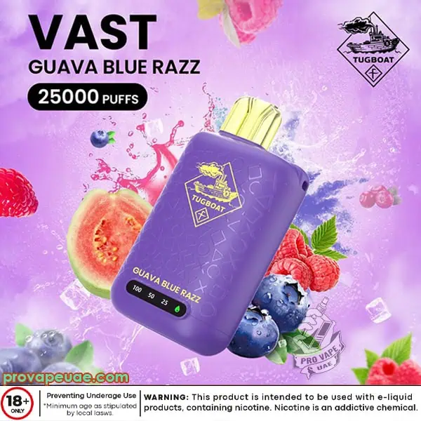 Popular amongst vapers in Dubai, Abu Dhabi, Sharjah and elsewhere in UAE, the Tugboat Vast 25000 Puffs exhibits sturdiness and your flavor consistency. It’s a dependable vape designed for users in need of large liquid capacity, disposable and modern system with peak performance.